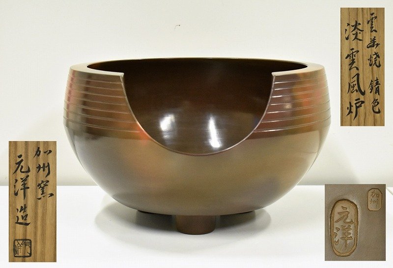 石川県金沢市のお客様に出張買取にてご依頼頂き、雲華焼 加州窯 山崎元洋 錆色 淡雲 風炉を買取りさせて頂きました。