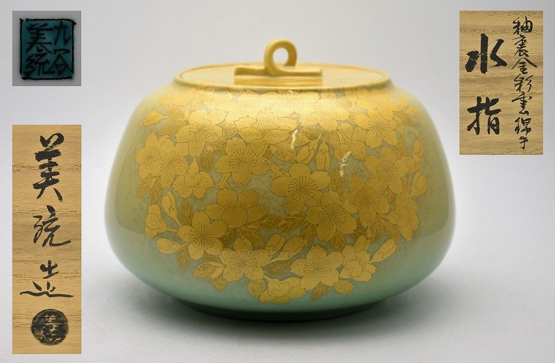 九谷焼買取 茶道具買取石川県小松市のお客様より◆人間国宝 九谷焼 吉田美統 釉裏金彩雲錦手 水指◆をお買取り。