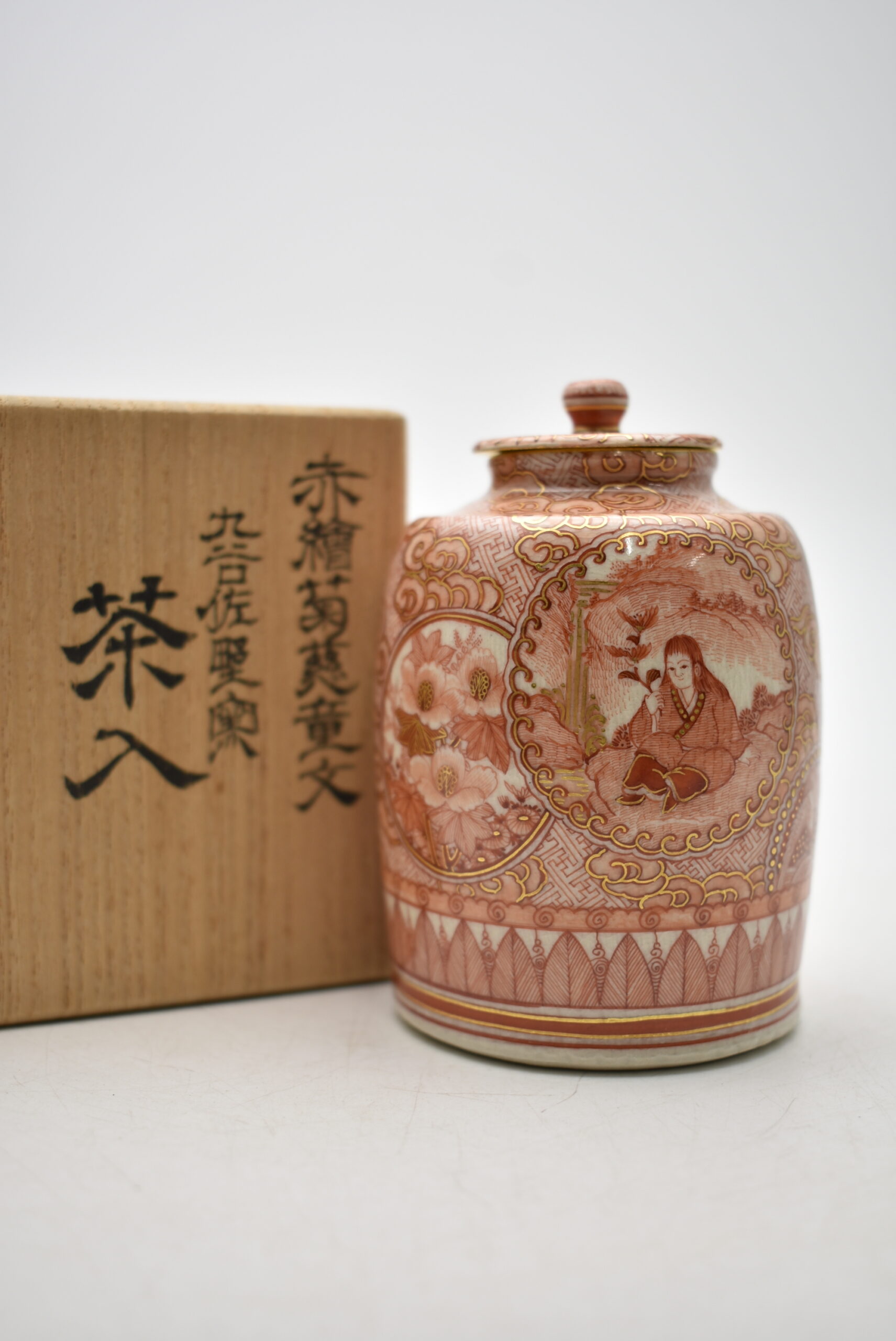 九谷焼買取 茶道具買取石川県小松市のお客様より◆九谷焼 赤絵の名工 佐野窯 福島武山造 赤絵菊慈童文 茶入◆をお買取り。