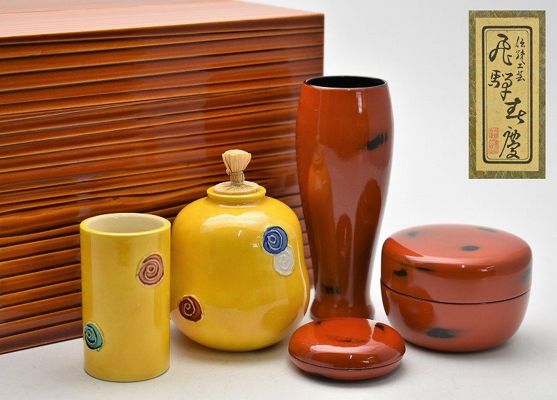 石川県金沢市のお客様に出張買取にてご依頼頂き、飛騨春慶 茶箱 黄交趾 振出 茶巾筒 茶筅筒 棗 香合 野点揃を買取りさせて頂きました。