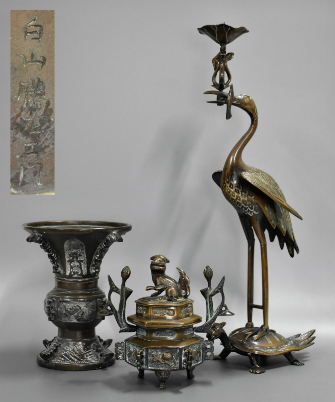 鶴亀燭台、獅子香炉、花立を買取りさせていただきました。