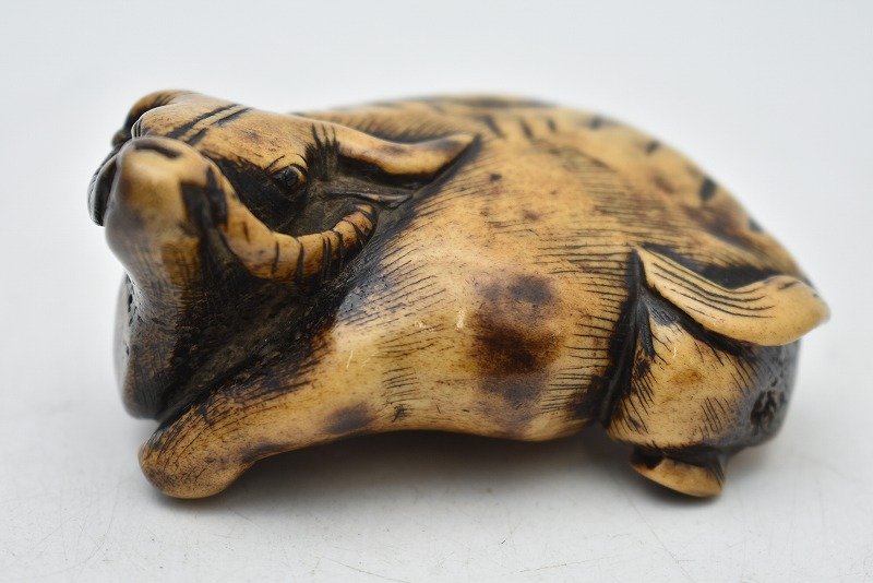 レトロ品買取 古道具買取【石川県七尾市】のお客様より◆時代 提物 細密彫刻 獣骨 大振り牛根付◆をお買取り。