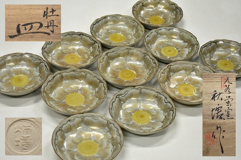 石川県小松市のお客様に出張買取にてご依頼頂き、九谷焼 名工 蛍窯 中村秋塘 金彩牡丹 皿 中皿 果実皿を買取りさせて頂きました。