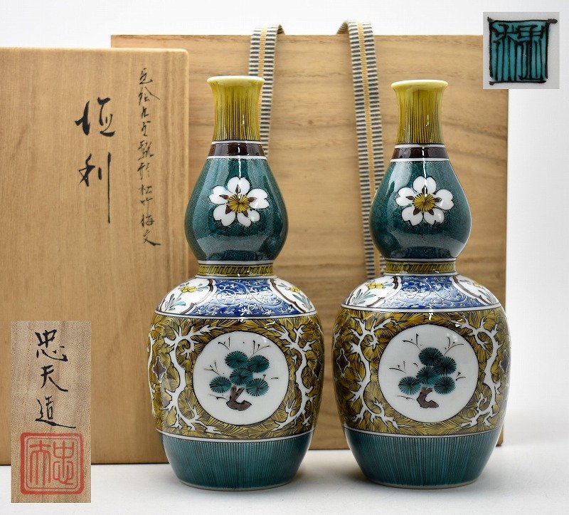 九谷焼買取 骨董品買取【石川県小松市】のお客様より◆九谷焼 名工 宮本忠夫 色絵九谷 松竹梅文 瓢形 徳利 酒器 一対◆をお買取り。