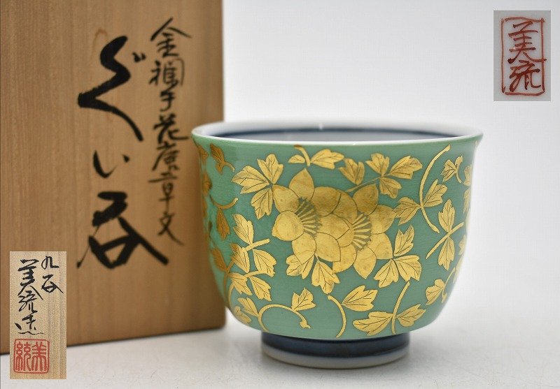 石川県加賀市のお客様より出張買取にてご依頼頂き、人間国宝 九谷焼 錦山窯 三代 吉田美統 金襴手花唐草文 ぐい呑を買取りさせて頂きました。