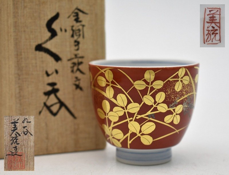 石川県加賀市のお客様より出張買取にてご依頼頂き、人間国宝 九谷焼 錦山窯 三代 吉田美統 金襴手萩文 ぐい呑を買取りさせて頂きました。