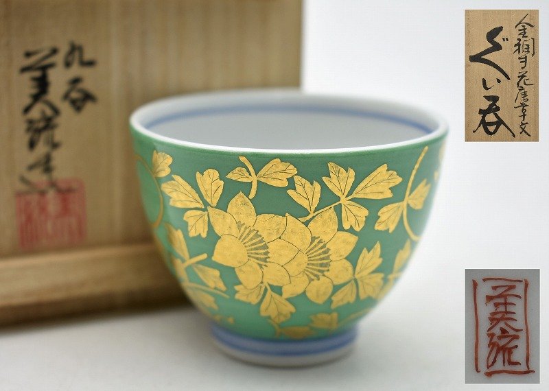 九谷焼買取 骨董品買取 九谷焼買取 骨董品買取人間国宝 九谷焼 錦山窯 三代 吉田美統 金襴手花唐草文 ぐい呑 酒器 酒盃 共箱 懐石道具石川県能美市のお客様に出張買取にてご依頼頂き、人間国宝 九谷焼 錦山窯 三代 吉田美統 金襴手花唐草文 ぐい呑 酒器を買取りさせて頂きました。 共箱あり。懐石道具 酒盃 九谷焼買取 アンティーク買取 古道具買取