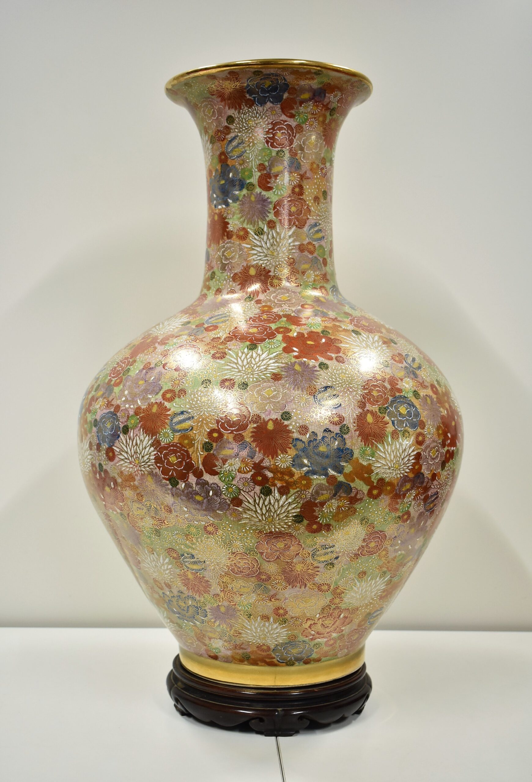 九谷焼買取 骨董品買取【石川県金沢市】のお客様より◆九谷焼 豪華絢爛 65cm 花詰紋様大花瓶 唐木台付◆をお買取り。