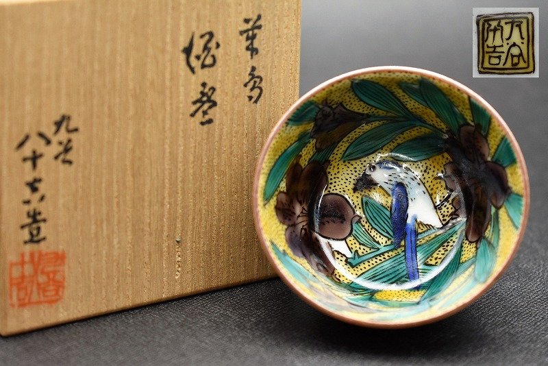 九谷焼買取 古美術買取【石川県小松市】のお客様より◆九谷焼 二代 徳田八十吉 花鳥図 酒盃◆をお買取り。