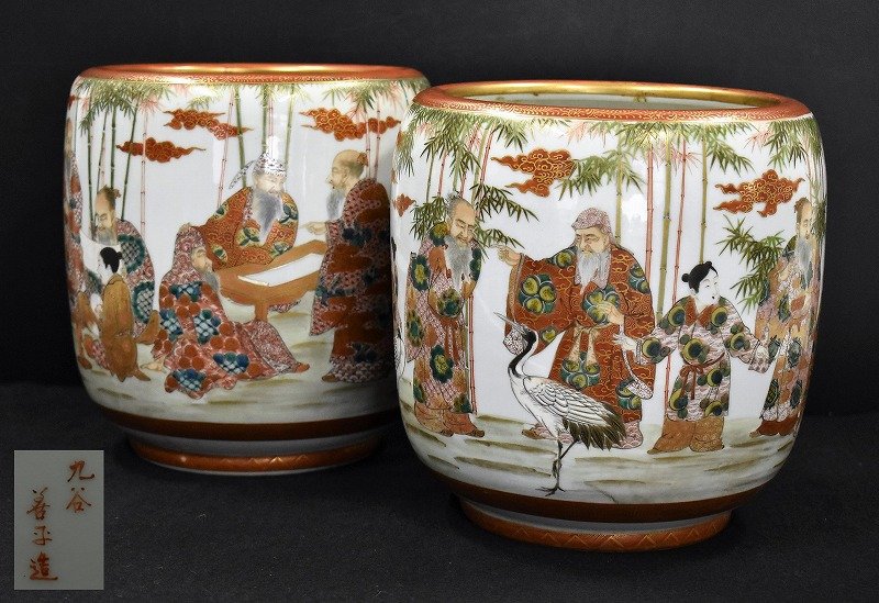 石川県金沢市のお客様に店頭買取にてご来店頂き、明治期 九谷焼 名工 武腰善平 細描画 色絵賢人唐子図 手焙り 火鉢 一対を買取りさせていただきました。