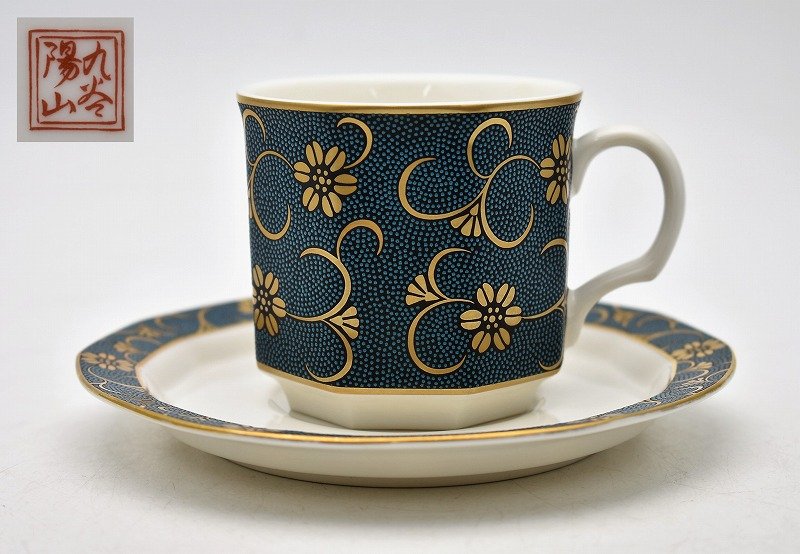 九谷焼買取 洋食器買取【富山県富山市】のお客様より◆九谷焼 陽山 青粒金彩唐草 カップ&ソーサー ◆をお買取り。