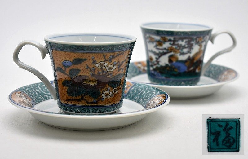 九谷焼買取 洋食器買取【富山県富山市】のお客様より◆九谷焼 角福 色絵花鳥図 珈琲碗皿 コーヒーカップ&ソーサー◆をお買取り。