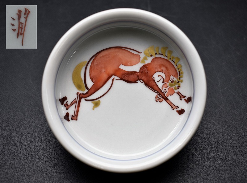 九谷焼買取 骨董品買取【石川県加賀市】のお客様より◆石川県指定無形文化財 九谷焼 武腰潤 庚午 馬 酒盃◆をお買取り。
