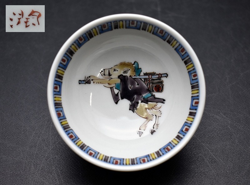 九谷焼買取 骨董品買取【石川県加賀市】のお客様より◆石川県指定無形文化財 九谷焼 武腰潤 丁亥 猪 酒盃◆をお買取り。