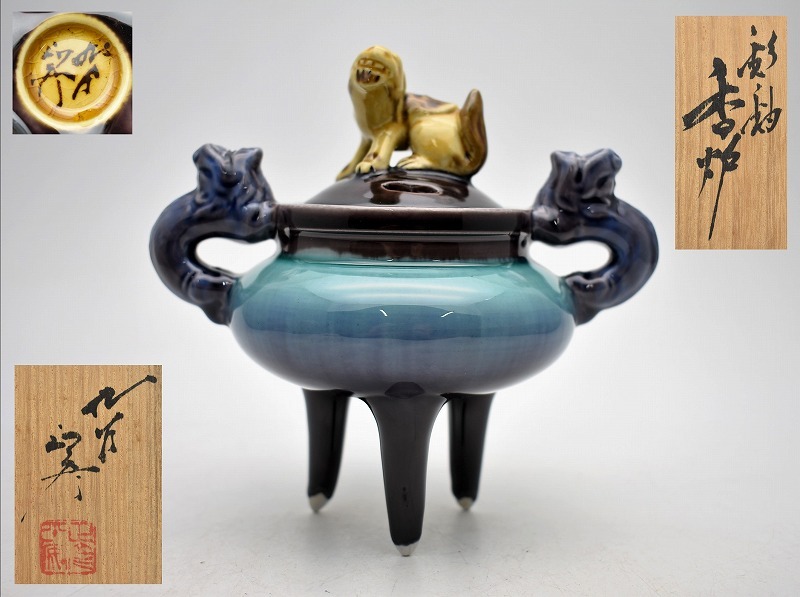 九谷焼買取 骨董品買取【石川県金沢市】のお客様より◆人間国宝 九谷焼 徳田正彦 三代 徳田八十吉 彩釉 獅子香炉◆をお買取り。