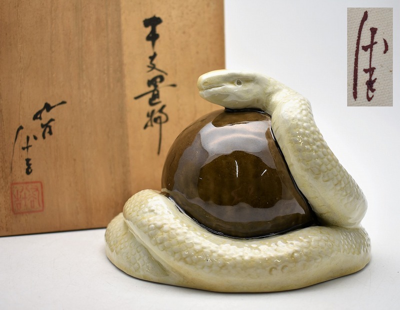 九谷焼買取【石川県野々市市】のお客様より◆人間国宝 九谷焼 三代 徳田八十吉 巳 蛇 干支置物◆をお買取り。