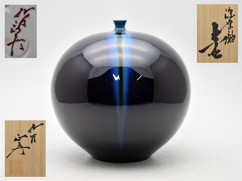 九谷焼買取 古美術買取【石川県小松市】のお客様より◆人間国宝 九谷焼 徳田正彦 三代 徳田八十吉 深厚釉 壷◆をお買取り。