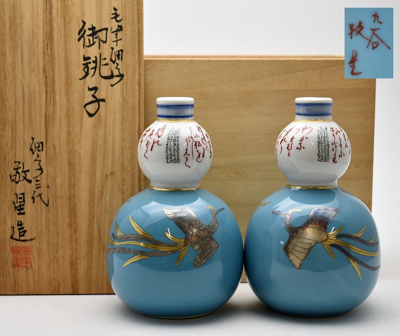 九谷焼買取 古道具買取【石川県小松市】のお客様より◆九谷焼 三代 田村敬星 毛筆細字 瓢形 酒器 御銚子 徳利 一対◆をお買取り。