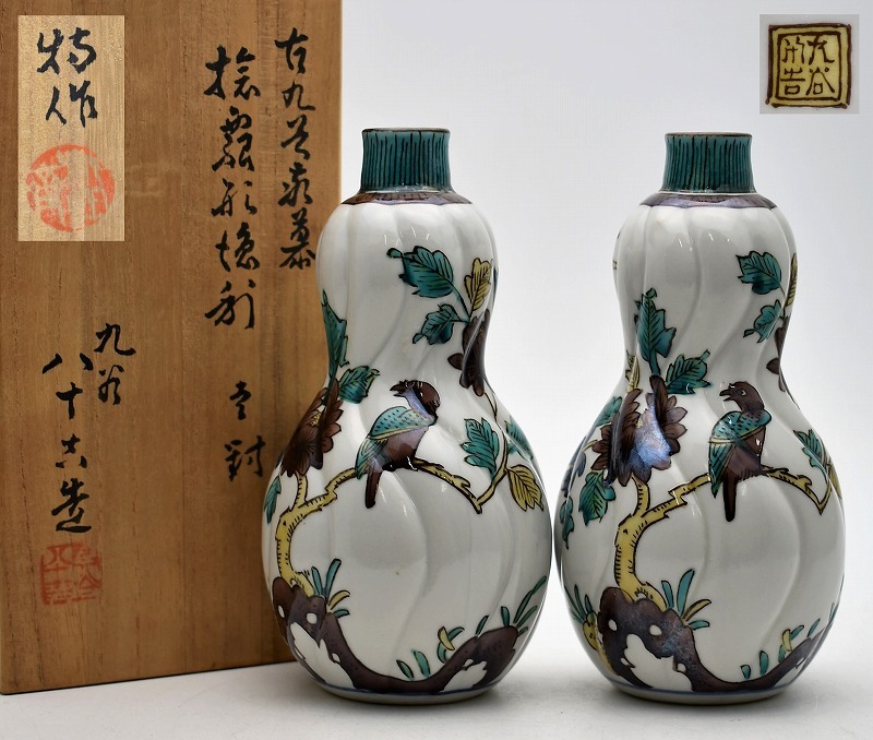 九谷焼買取 骨董品買取【石川県小松市】のお客様より◆九谷焼 二代 徳田八十吉 古九谷写 花鳥図 捻瓢形徳利 酒器 一対◆をお買取り。