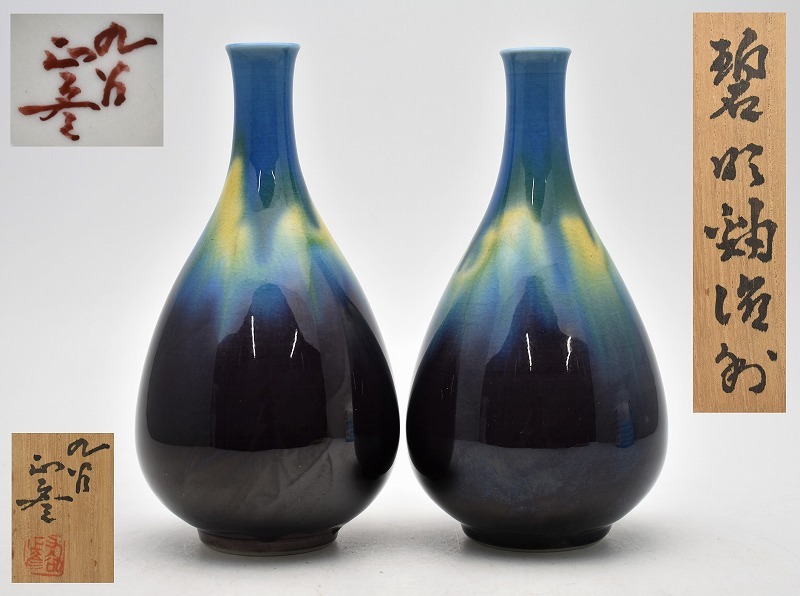 石川県小松市のお客様より出張買取にてご依頼頂き、人間国宝 九谷焼 徳田正彦 三代 徳田八十吉 碧明釉 徳利を買取りさせていただきました。