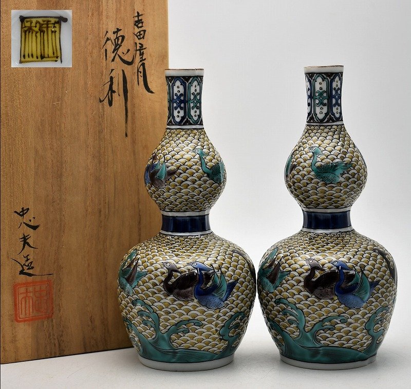 九谷焼買取 骨董品買取石川県金沢市◆九谷焼 名工 宮本忠夫 吉田屋風 瓢形 徳利 酒器 銚子 一対◆をお買取り。
