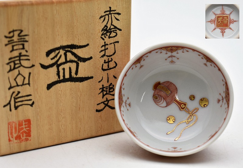 石川県能美市のお客様より出張買取にてご依頼頂き、九谷焼 佐野窯 福島武山 赤絵打出小槌文 酒器 盃を買取りさせていただきました。