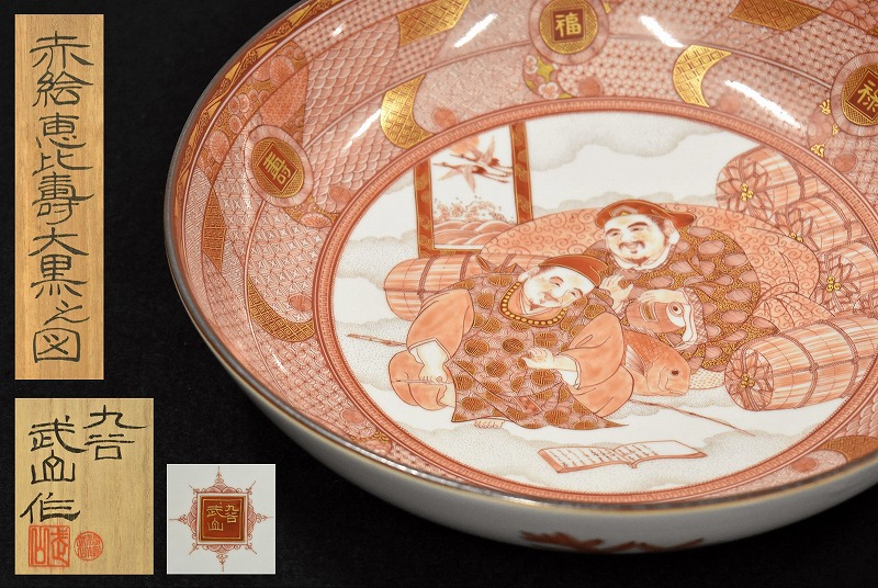 石川県能美市のお客様より出張買取にてご依頼頂き、九谷焼 佐野窯 福島武山 伝統工芸士 赤絵恵比寿大黒之図 大鉢を買取りさせていただきました。