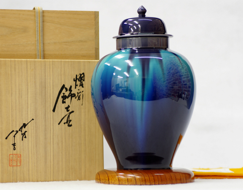 石川県羽咋市のお客様より出張買取にてご依頼を頂き、九谷焼 人間国宝 三代徳田八十吉 耀彩飾壷を買取りさせていただきました。
