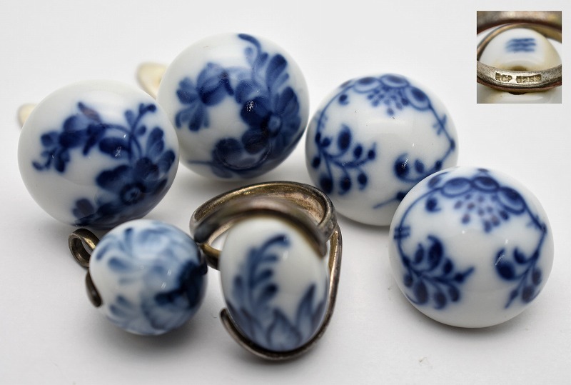 富山県南砺市のお客様より出張買取にてご依頼頂き、アンティーク Royal Copenhagen ロイヤルコペンハーゲン イヤリング 指輪 カフスボタン ペンダントトップを買取りさせていただきました。