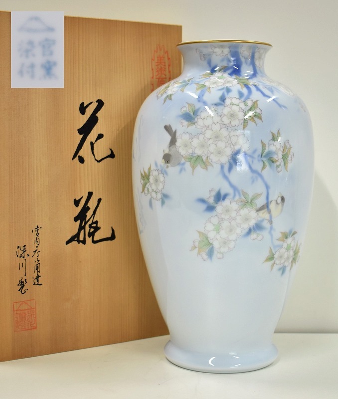 石川県小松市のお客様より出張買取にてご依頼頂き、宮内庁御用達 有田焼 深川製磁 官窯染付 花鳥図 花瓶を買取りさせていただきました。