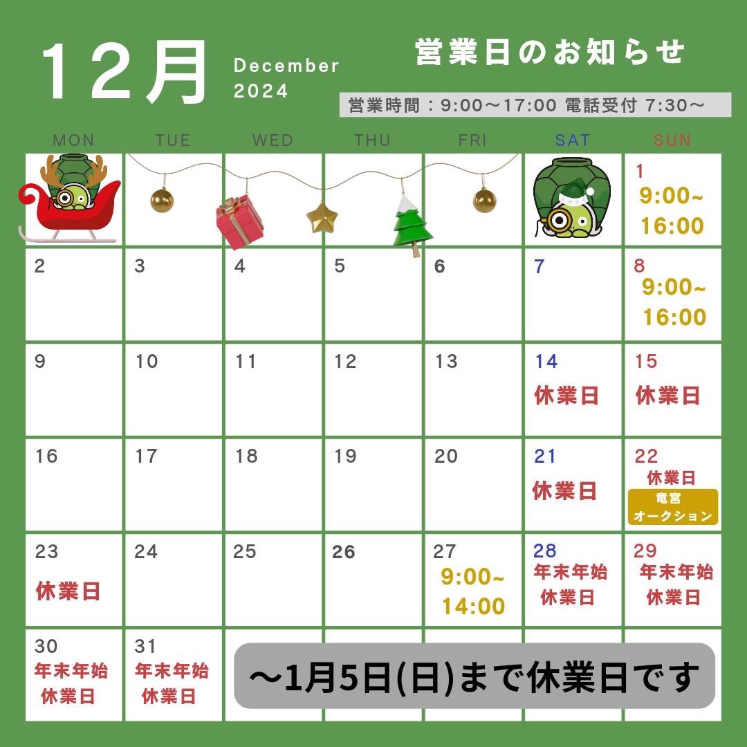 竜宮堂 竜宮の酒の令和6年12月の店舗営業日のお知らせです。
