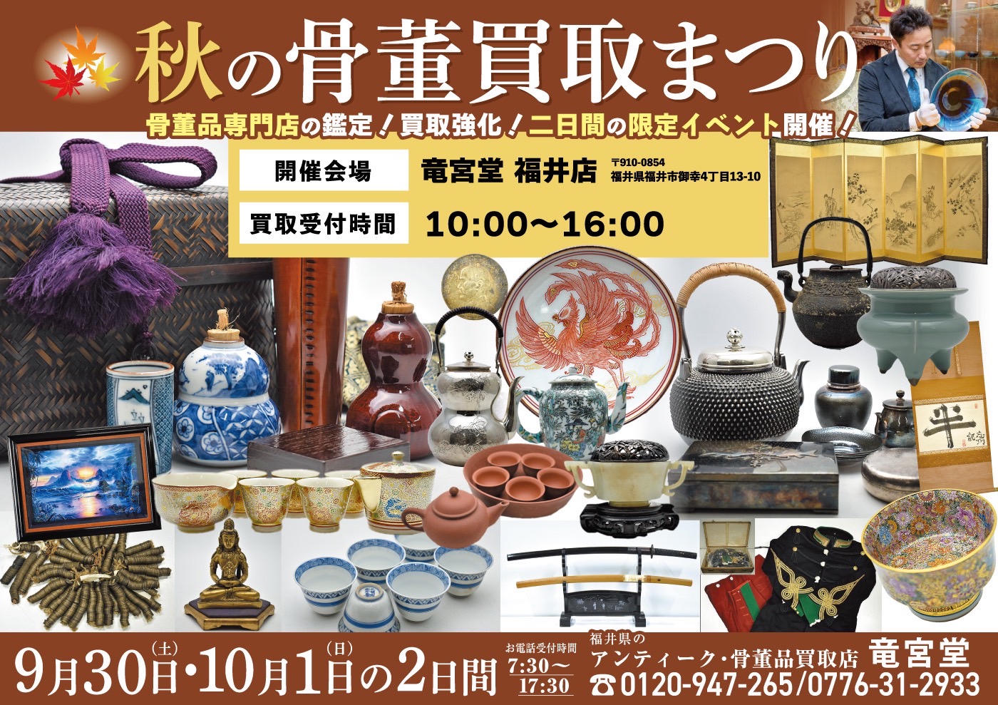 9月30日(土)・10月1日(日)竜宮堂 秋の骨董買取鑑定会in福井 開催中です。