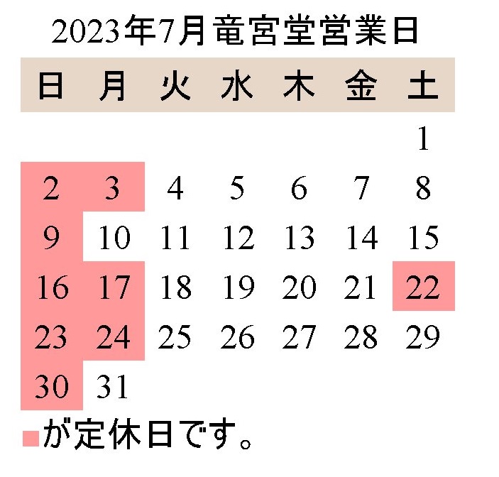 竜宮堂 令和5年7月の営業日のお知らせです。